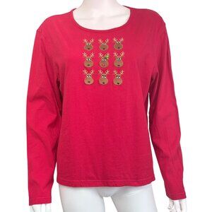 NorthStyle Womens Long Sleeve Christmas Shirt XL Red Reindeer Embroidered Cotton