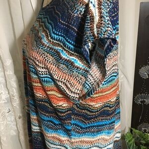 It’s a nice draping top or short dress/swim cover. Slight off the shoulder. Gently preowned condition. See tag for material details