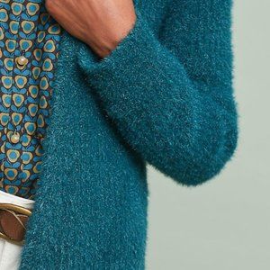 Beautiful cardigan sweater from Anthropologie. Dark teal color with a bit of shimmer. No snags or pilling that I can find.