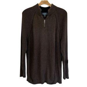 Northcrest Classic Men's 3XLT 1/4 Zip Brown Soft Knit Sweater with Ribbed Hems