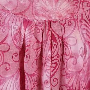 Lined with a polyester mesh to give it fullness with a colorwashed pink exterior this top says I love pink. Relaxed fit with a round neckline, short batwing sleeves and a 2 inch hugging hemline. Great pre-owned condition