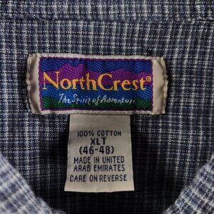 Northcrest Men XLT Tall Blue Check Short Sleeve Button Up Shirt Cotton Woven