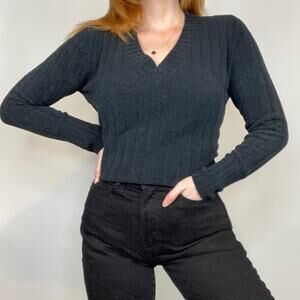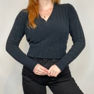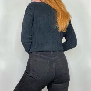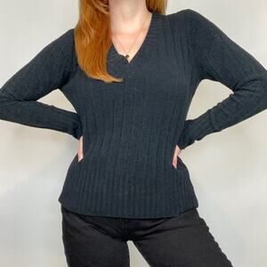 Northcrest Size Small Black V Neck Semi Fleece Textured Fitted Sweater.