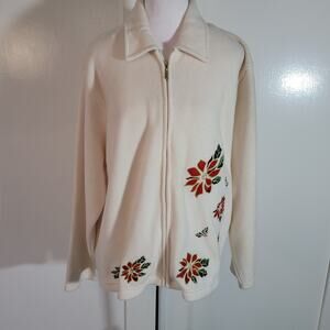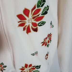Northcrest Size XL 18 Poinsettia Full Zip White Fleece Jacket Blank Gift Tag