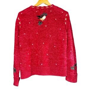 Northcrest Sweater Cardigan Bird Embroidered with Lambs Wool Size Medium Winter