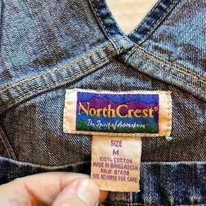 Northcrest the spirit of adventure-size M-cropped overalls-dark wash denim. 100% cotton.. metal buttons throughout, belt buckle loops. Adjustable straps. Multiple small pockets on chest, two front pockets, two large back pockets, one side pocket. Super cute in great condition! See photos for approximate flat measurements.