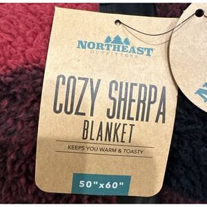 Northeast Outfitters Cozy Cabin Red Buffalo Check Sherpa Blanket 50" x 60" NEW