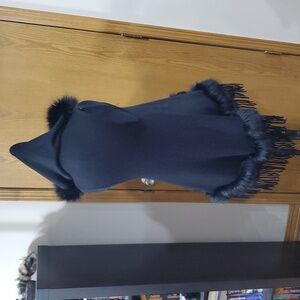 beautiful condition no issues size medium faux fur trimmed fringed hem long hooded single closure top
