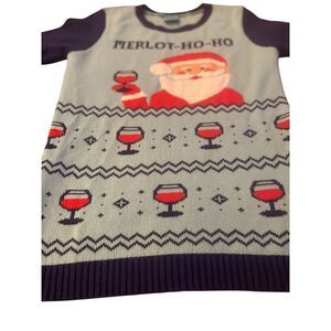 Norther Pole Pullover Merlot Ho Ho Drinking Santa Holiday Sweater Green/ Red S