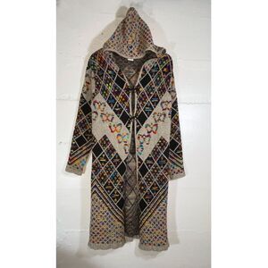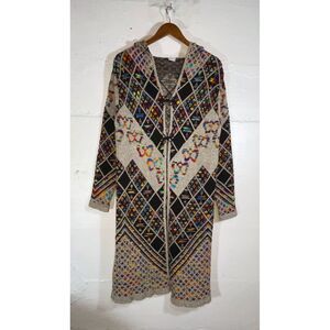 Northern Angel Hooded Knit Cardigan Coat Multicolor Boho Southwestern Large