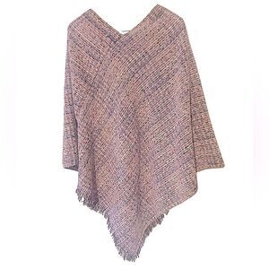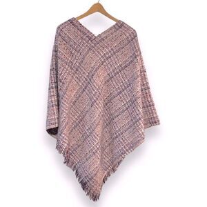 Northern Angel Poncho Shawl Knit Sweater Plaid Pink Purple L XL