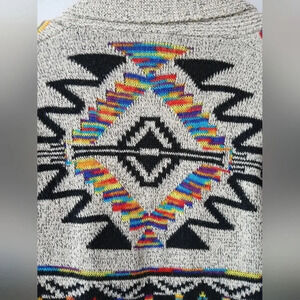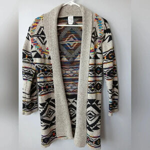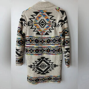 Northern Angel southwestern bohemian rainbow aztec print, long open front cardigan.