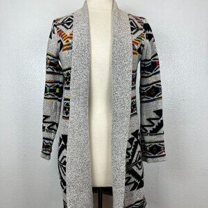 Northern Angel Women Sweater Gray Aztec Southwestern Cardigan Open Front M