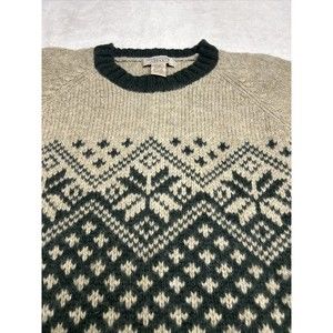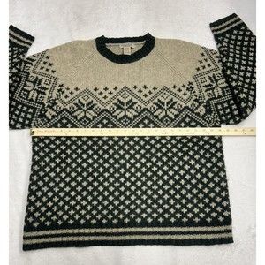 Northern Apparel Sweater Men's XL Wool Fair Isle Snowflake Nordic Green/Beige. Please see pictures for condition and measurements for proper sizing and fit.