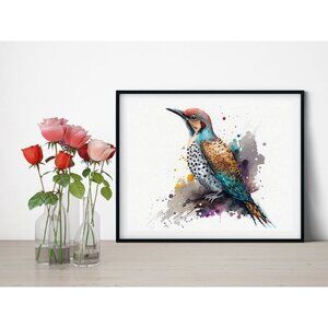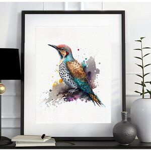 Northern Flicker Watercolor Art Oil Painting Print - Bird Wall Art Decor