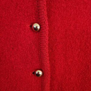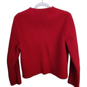 Northern Isle Vintage Red Boiled Wool Jacket, Size 9/10. Pit to pit 20", shoulder to hem 20", Silver Buttons, Braided Hems, 100% Wool, Made in Hong Kong, Label Needs Stitch. Good Pre-Owned Condition