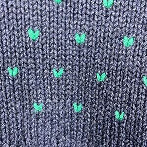 Northern Isle Womens Knit Sweater XL Navy/Green Crew Neck Button Detailing on Left Shoulder Hand Embroidered Hearts Shoulder Pads Vintage Classic EUC