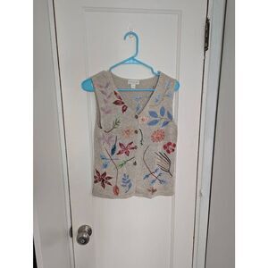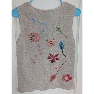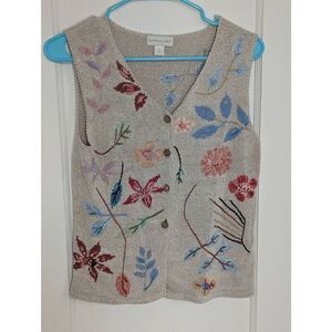 Northern Isles Button Front Knit Floral Embroidered Vest - Size S