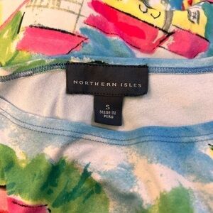 Northern Isles Coastal Village Vibrant Neon Pink Blue Quarter Sleeve Top Small