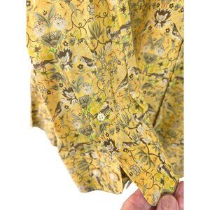 Northern Isles Cotton Shirt Men L Pale Yellow Bird Floral Print VTG Style NWT