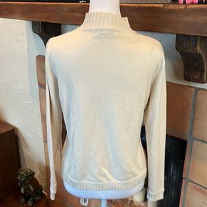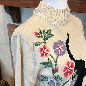 Northern Isles Cream Mock Neck Floral Black Cat Sweater, M!
