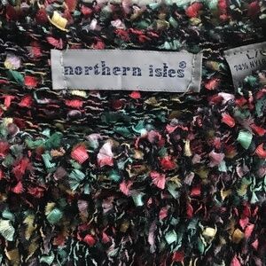 This sweater from Northern Isles looks like it's made of woven ribbons. Wonderful colors both bright and subtle at the same time.