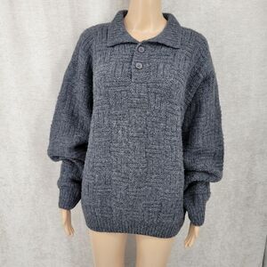 Northern Isles Knitted by Hand Gray Wool Vintage Sweater With Collar Medium