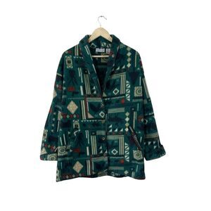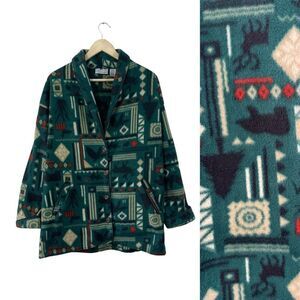 Northern Isles Large Button Fleece Jacket Moose Bear Trees Nature Womens
