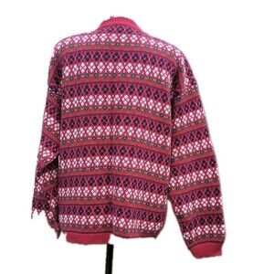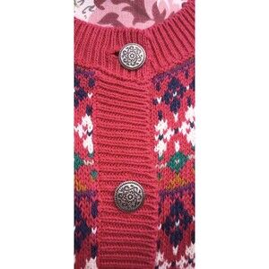 Northern Isles Nordic Print Sheep Red Women Large Sweater Button Up Chunky Knit