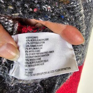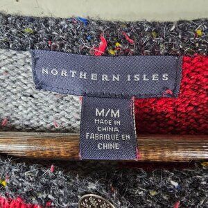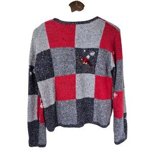 Northern Isles Patchwork Wool Angora Cardigan M Gray Red Bird Snowflake Winter