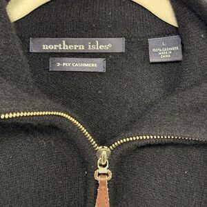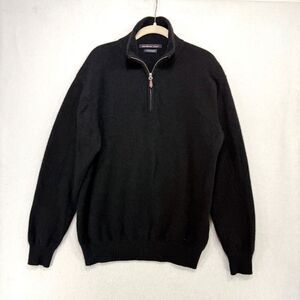 Northern Isles Sweater Men L Black 100% Cashmere 2-Ply 1/4 Zip Mock Neck Soft