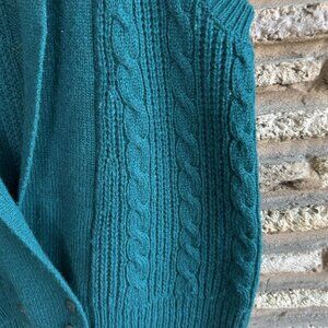 Vintage mallard green - teal cable knit chunky doubled breasted sweater vest