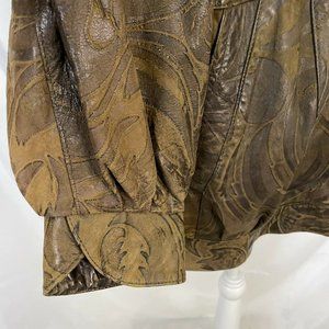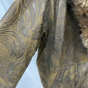 Northern Lights Bloomingdale's Fox Fur Collar Tooled Leather Jacket Small