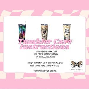 Tumbler Care Instructions: Hand-wash - To keep the print vibrant and to protect the vacuum seal of the tumbler, we highly recommend to not put these tumblers in the dishwasher. Do not allow tumbler to be left in direct sunlight or to be exposed to extreme heat (ie: left in a car) as this can cause the coating on the tumbler damage which can cause image to fade.