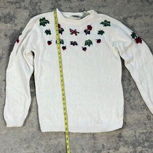 Northern Reflections Knit Ivory White Harvest Fall Leaves Sweater Crewneck Sz S