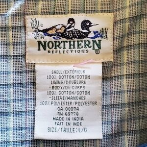 Northern Reflections Lined Denim Jacket Size L Vintage Cotton Embroidered Plaid