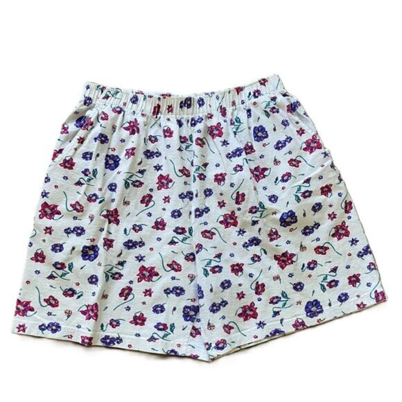 Northern Reflections Pull-On Shorts with Pockets White Floral Print Vintage 90s