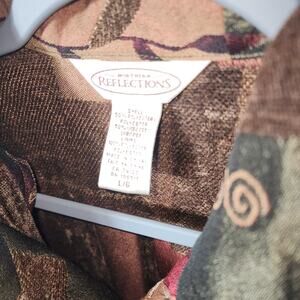 Northern Reflections Sz L Mixed Media Patchwork Leaves Print Button Up Jacket