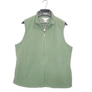 Northern Reflections Vest L Green Cable Fleece Mock Neck Zipper Pockets Casual