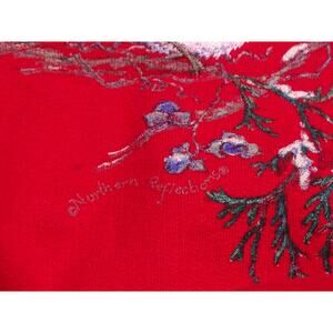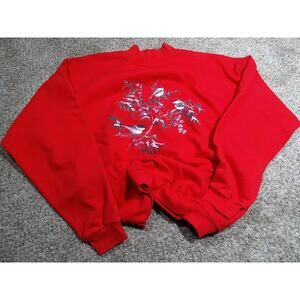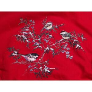 Northern Reflections Vintage Red Winter Birds Mock Neck Sweatshirt L Cottagecore