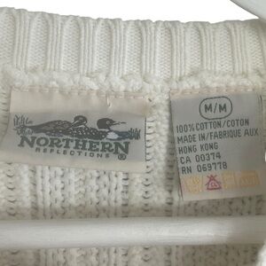 Northern Reflections White Cable Sweater 100% Cotton Size Medium Vintage 90s
