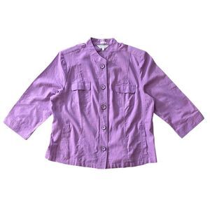 Northern Reflections purple linen blend mandarin collar 3/4 sleeve button up shirt.