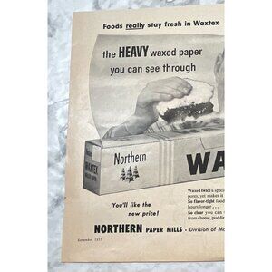 Northern Waxtex Vintage Print Ad 1950s Heavy Wax Paper Kitchen Wall Art Decor