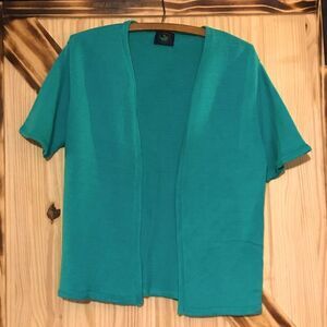 Unique Open shirt sleeve cardigan has Ornamental knit work Fishbone detail within the weave at the sleeve, the hem, the neckline, and down the opening of the sweater. This is a short sweater please mind the measurements