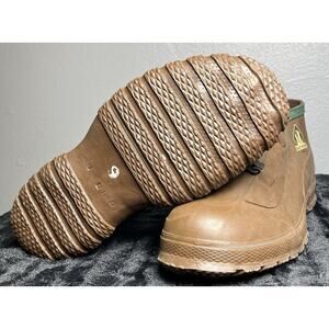 The Northerner USA Rubber Boots are men's size 9 overshoes designed for outdoor use. These brown boots feature a buckle closure and are made of durable rubber material. The Northerner Chore Overshoe model offers protection and style for those looking to stay comfortable and dry in various outdoor environments. Perfect for those needing a practical and rugged boot option.