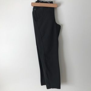 Northface cropped jogger pant in dark grey fabric, size XS. Elastic ribbed waistband with adjustable inner drawstring. Open side pockets, right side zip pocket. Approximately 26โ waist, 24โ inseam. So cute like new, sadly too small for me.