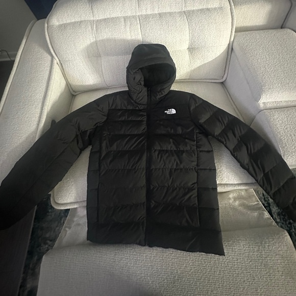 Puffer Jacket meant to help with the cold. No holes, rips, or popped bubbles, nor rusty zipper, in great condition!