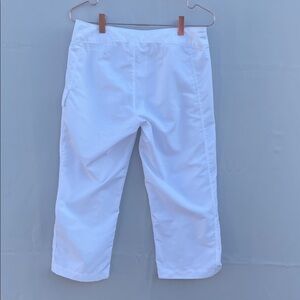 The North Face white capri pants, with side pocket. Tie and Velcro closure. Size 2 measurements in photos