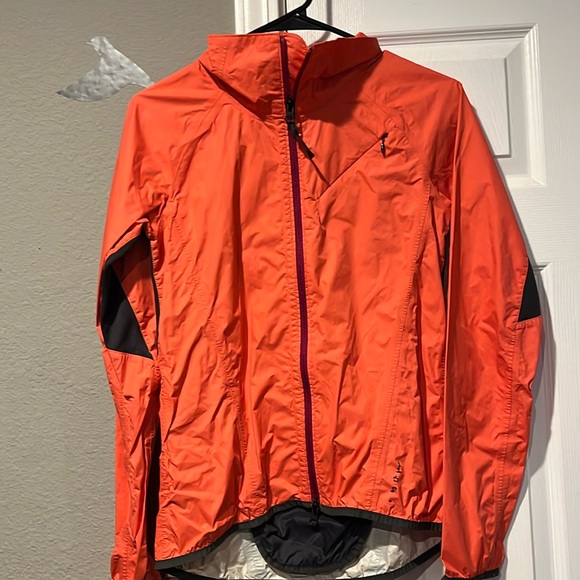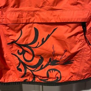 Great condition, just a bit of wearing on the lettering and design on the back of the jacket where the stow pocket is located. Lots of life left. Coral/ salmon color