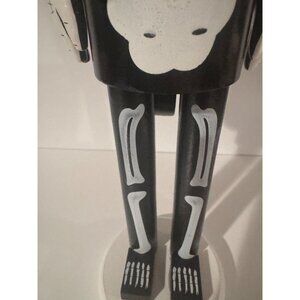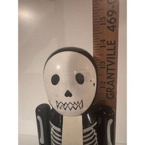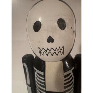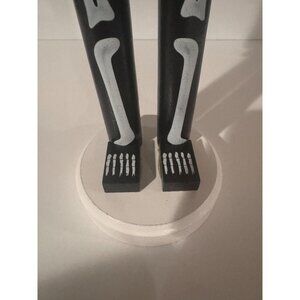 A mix of traditional nutcracker styling and eerie skeletal design, this piece is sure to get attention from collectors and Halloween lovers alike. This particular unit has character from age and storage, making it a one-of-a-kind addition.